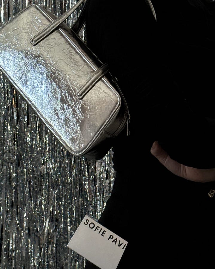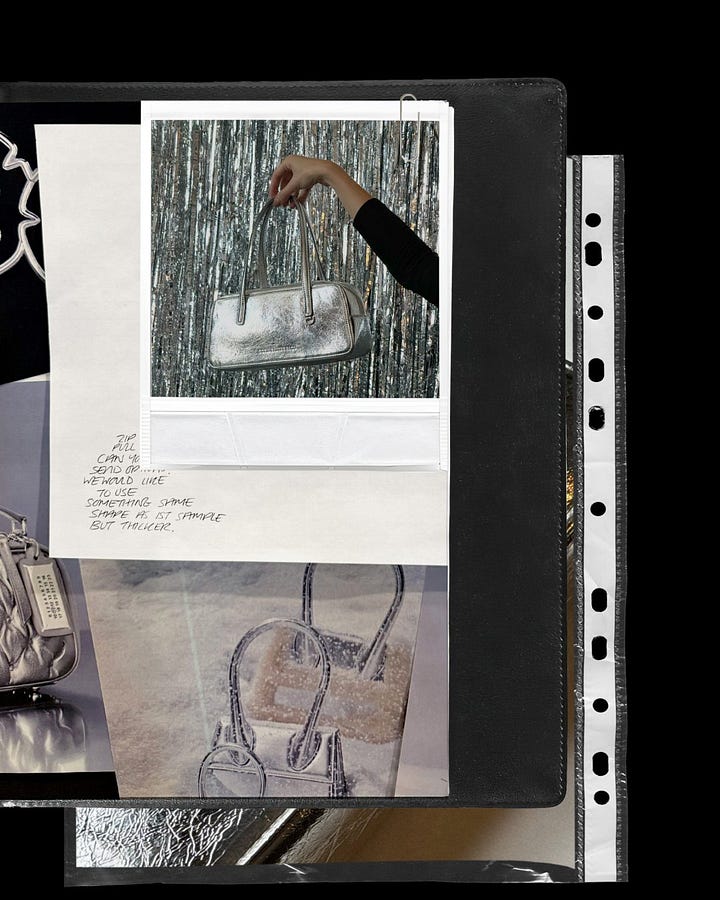 This year, at the brand, we were trying to think of a fun, unique holiday gift to offer that was a little different and unique, and I knew it had to be a bag. I started sourcing different materials and colors and finally landed on a chrome vegan leather in a ‘90s inspired shape.